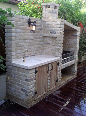 מטבח גינה בהתאמה אישית ללקוח בנוי מבריקים המיובאים מחול וכולל גריל נירוסטה בהתאמה אישית ללקוח