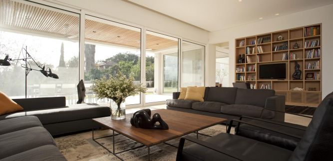 סלון בבית מגורים בשרון בתכנונה של אדריכלית ורד בלטמן כהן