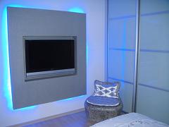 חדר ההורים ,קיר גבס עם תאורה אחורית ומקום לlcd