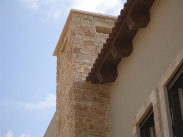 חזית מחופה באבני פירוק, מראה על ארובת הקמין