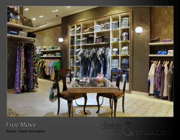 . FM The wall חנות מותגים עבור רשת החנויות Free Move, ירושלים. שולחן התצוגה בחנות, פריטים אשר נבחרו בשוק הפשפשים וחודשו עבור החנות. עוצב על ידי סטודיו ארטישוק.