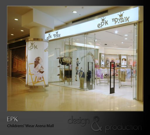 . EPK חנות בגדי ילדים עבור רשת עולמית, קניון ארנה. כניסה לחנות. עוצב על ידי סטודיו ארטישוק.