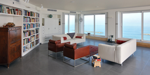 סלון בדירה על חוף ימה של תל אביב- מוזס פרידמן סטודיו