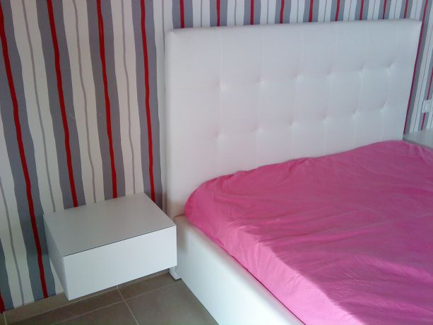 מיטת נערה מרופדת ושידה מרחפת