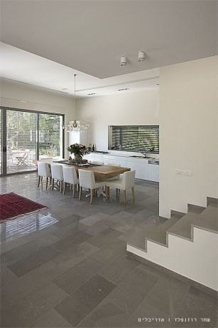 מבט לפינת האוכל והמטבח, בית פרטי בנווה מונוסון, יעל שחר אדריכלים