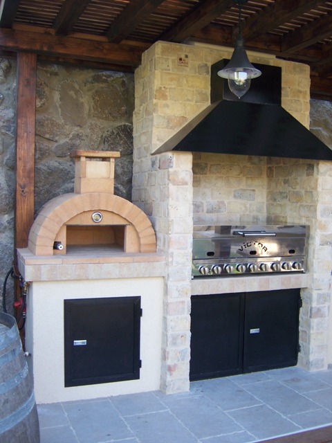 גריל גז מקצועי בתוך מבנה בנוי עם ארובה