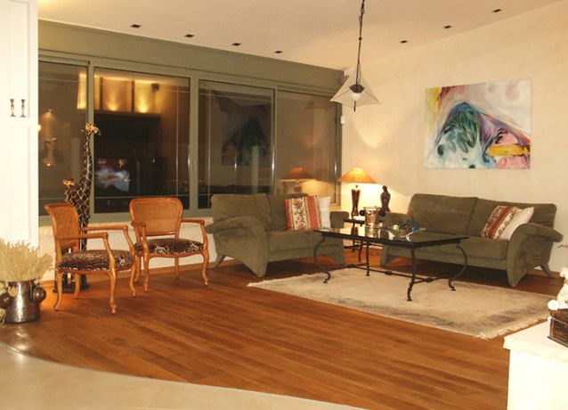 דוגמא לסלון מעוצב בדניה,עם פרקט בחיתוך מיוחד