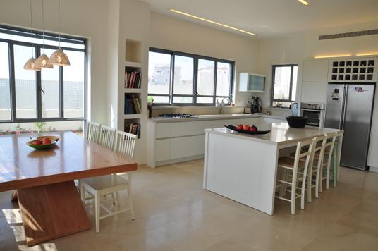 מבט צד לפינת אוכל +מטבח של מעצבת הפנים מיכל גרינברג פוקס