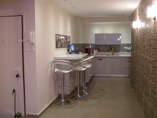 קיר בריקים במטבח דירה בגבעתיים, עיצוב שוש פנקס