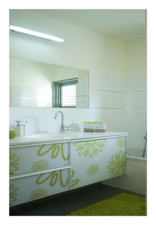 חדר אמבט בעיצוב נקי בעל קווים ירקרקים, בעיצוב ותכנון של לילך לויט