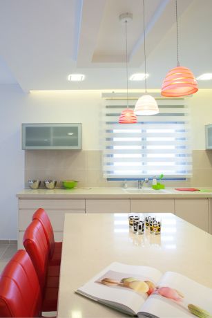 מטבח לבן עם נגיעות קטנות של צבע, עיצוב דלית ונגרובסקי
