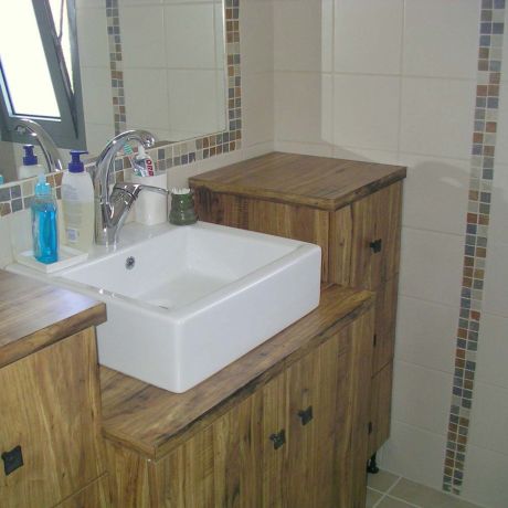 קישוטי פסיפס וארון מעץ מלא בחדר אמבטיה תכנון ועיצוב ורד פולקמן