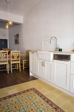 מבט מהמטבח אל פינת האוכל בעיצוב הילה לוסקי