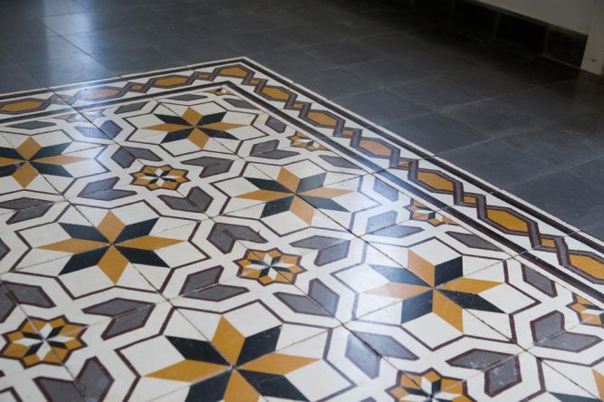 ריצפה מצוירת מקורית בבניין לשימור ביפו, בעיצוב ותכנון של הילה לוסקי