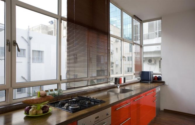 דירת מגורים בת"א בסגנון רטרו, המטבח מוקם במרפסת - תכנון ועיצוב הילה לוסקי