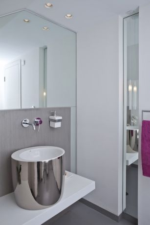 שירותי האורחים בדופלקס בכפ"ס זכו למראה הייטקיסטי ונוצץ. אורית כוכבי עיצוב פנים ואדריכלות
