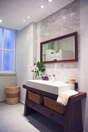 חדר אמבטיה בעיצוב כפרי וחם של סיגל לנמן סוקול