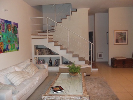 סלון הבית ומבט אל המדרגות, הכוללות נישה לאחסון. עיצוב: חיה ברק