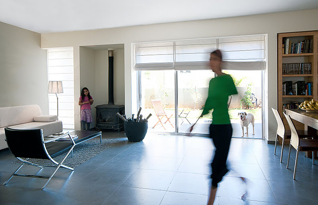 סלון פתוח לעבר פינת האוכל והמטבח. עיצוב של saab architects