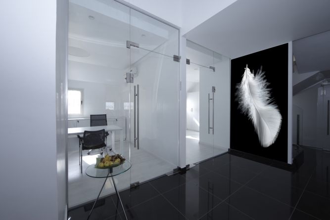 עיצוב משרד עם דגש על חללים מאווררים ותוספת חיפוי קיר בשחור לבן. עיצוב: אורית סנדר