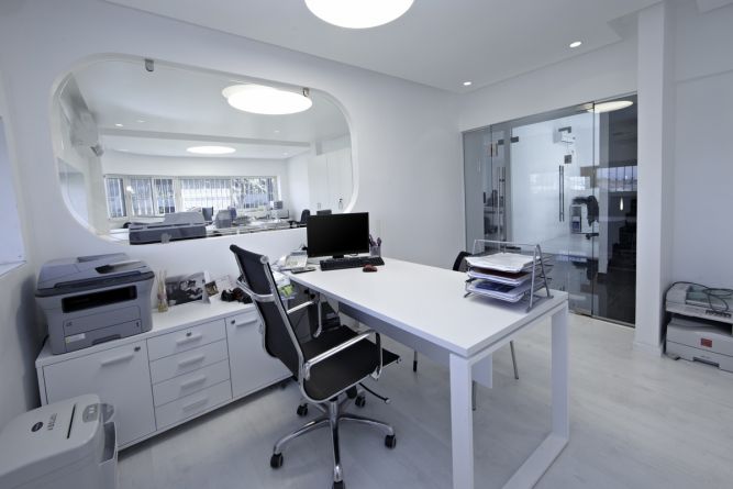 משרד מעוצב בקווים מודרניים. משחק בין פרטיות וציבוריות. עיצוב: אורית סנדר