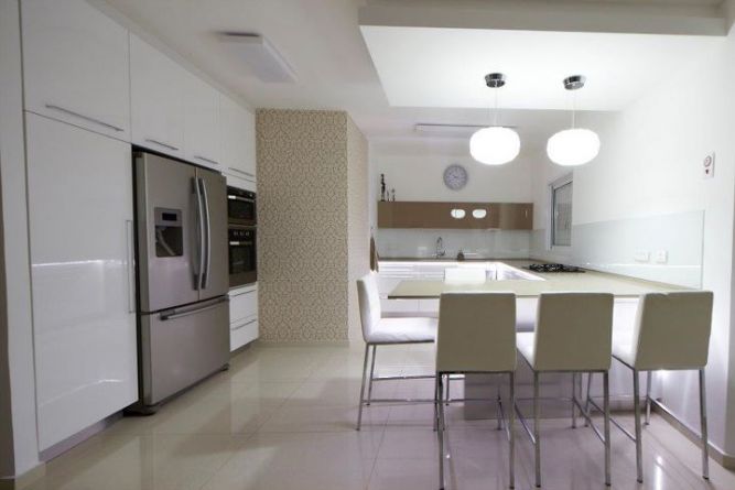 חלל מטבח מעוצב בקווים מודרניים. עיצוב של אורית סנדר