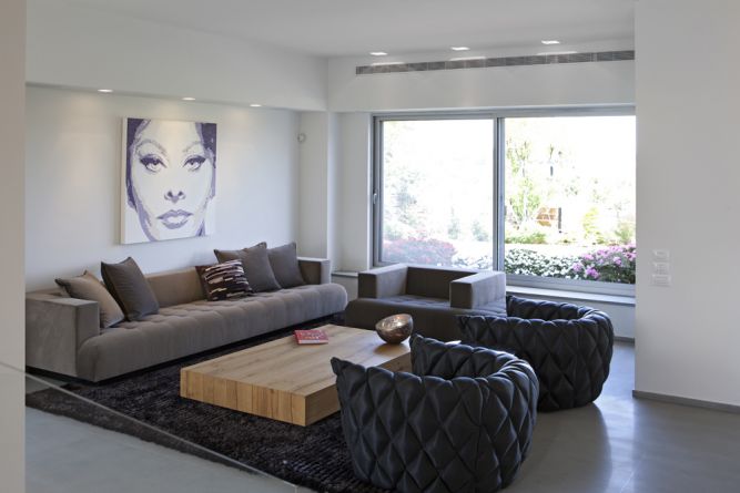 סלון מודרני עם אלמנטים ביתיים. עיצוב: ענבל ברקוביץ