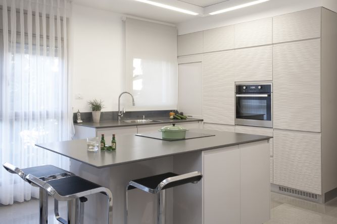 מטבח בהיר בסגנון נקי ומינימליסט. עיצוב של ענבל ברקוביץ