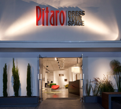עיצוב חזית אולם התצוגה של חברת פיטרו ריהוט משרדי. עיצוב: הווארד ג'ורנו