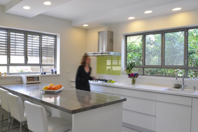 מטבח מודרני בצבעי לבן וכסף בעיצוב מיכל גרינברג-פוקס
