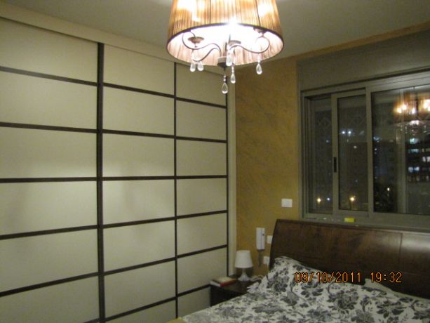 חדר שינה צבעוני וחם עם ארון במראה יפני. עיצוב: MHstudio