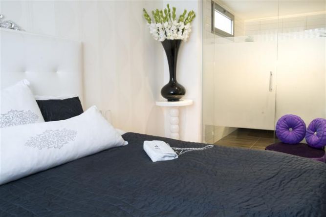 חדר שינה משולב מקלחון בעיצוב מרשים ויוקרתי של ג'ני דיין הוםסטיילינג