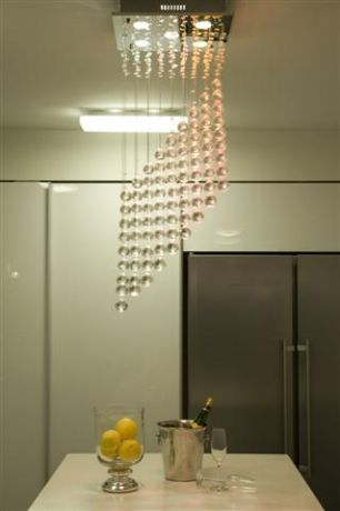 מטבח מעוצב בדגש על התאורה המקורית ופרטי ההום סטיילינג בעיצוב ותכנון של ג'ני דיין