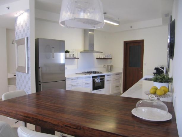 מטבח לבן בשילוב עץ ונגה, עיצוב פילצקי עיצובים