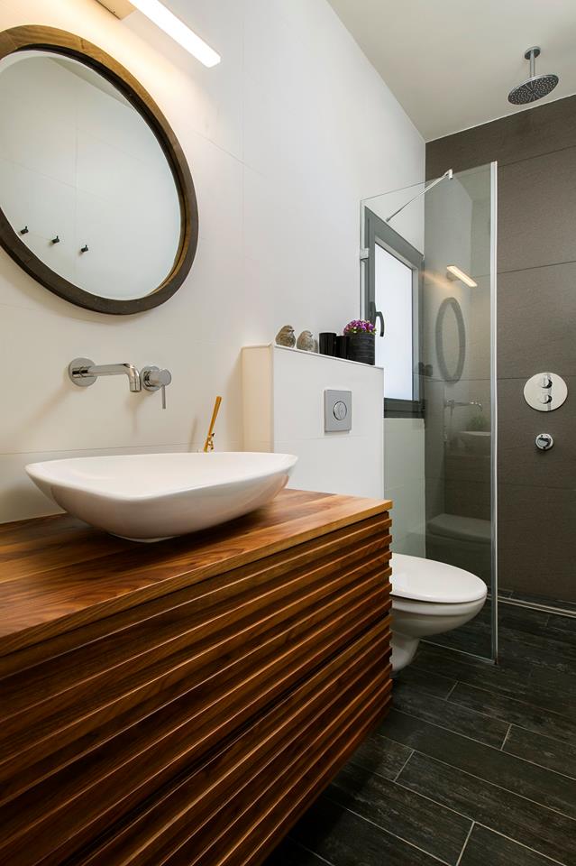אמבטיה ושירותים בגוונים חומים