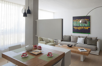עיצוב פינת אוכל וסלון בסגנון מודרני מינימליסטי, בפנטהאוז בגבעתיים - אטלס+ דרור- סטודיו לאדריכלות ועיצוב