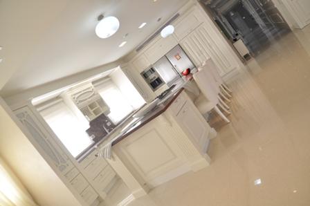 מטבח מעוצב בסגנון קלאסי מפואר, כולל אי מרכזי ופינת אוכל קטנה. סיגלית פרץ - אדריכלות ועיצוב פנים