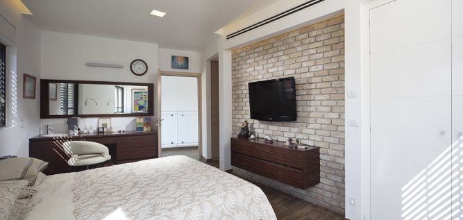 מבט כללי: חדר שינה במראה יוקרתי, מודרני ואלגנטי. תכנון ועיצוב: יוסי שאול