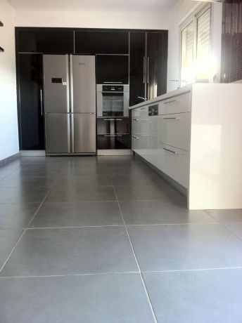 עיצוב ותכנון טליה כהן אבוטבול -מטבח מודרני בגוונים שחור לבן - חזיתות זכוכית שחורה בשילוב ארונות שלייפלאק לבנים