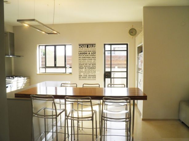 מטבח מינימליסטי עם טקסט גרפי לאוירה מעוצבת בחלל