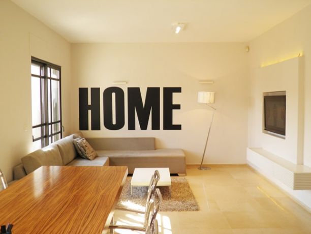 פינת משפחה בצירוף מילה אחת על הקיר שנותנת כל כך הרבה משמעות לחלל