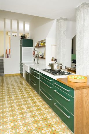 מטבח, אריחי בטון מצויירים. עיצוב - אורלי אביטל