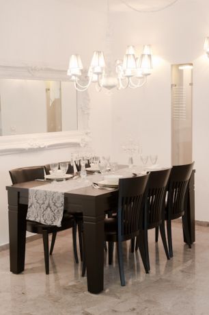 פינת אוכל מעוצבת בשילוב גוף תאורה ענתיק משופץ