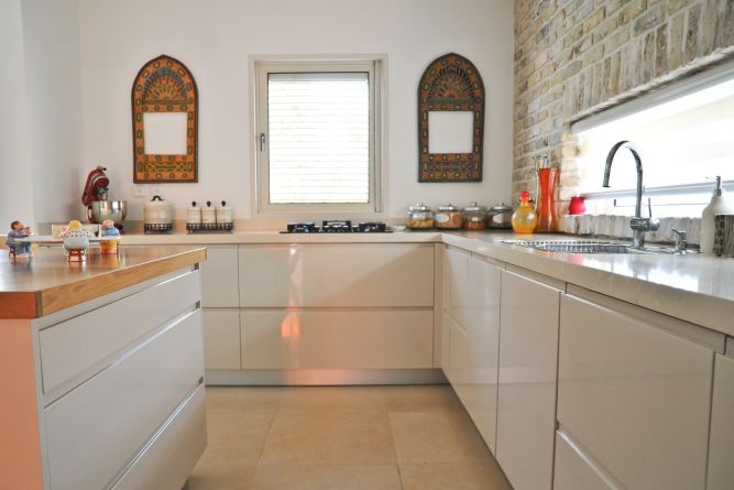 מטבח בסגנון מודרני בשילוב בריקים - בעיצוב ליהי שמאי