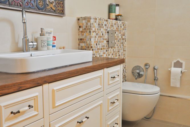 מבט אל חדר רחצה בעיצוב ליהי שמאי