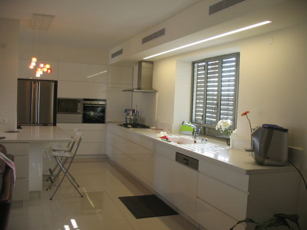 מטבח לבן, צבע בתנור. עיצוב - ענת קדר