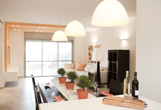 מבט מפינת האוכל אל הסלון בעיצוב ליאת הראל