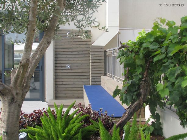 מקלחת חיצונית בדירת גג בתל אביב, בעיצוב כרכום עיצוב נוף בע"מ