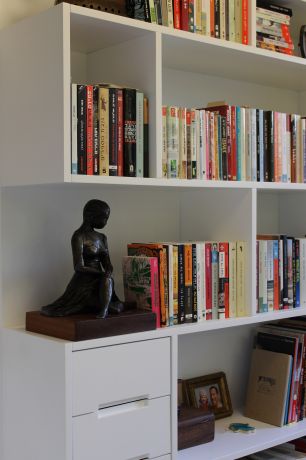 ספרייה שתכננתי ועיצבתי בהתאמה לפרופורציות הקיר