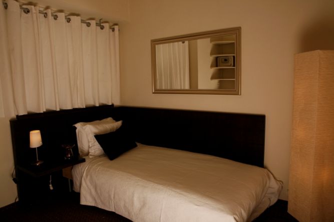חדר שינה יחיד במלון בוטיק בירושלים.